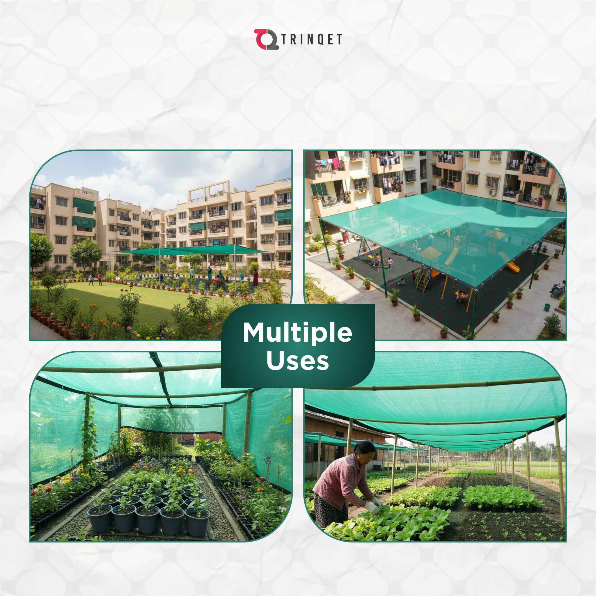 The Trinqet 3x5mt balcony shade net provides superior UV protection, reduces heat buildup, and creates a cooler, more comfortable outdoor space. It protects balconies, terraces, gardens, and patios from harsh sunlight while enhancing privacy.